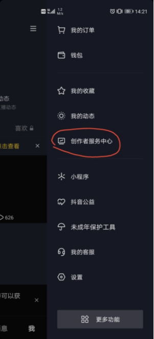 2.点击“创作者服务中心”选项