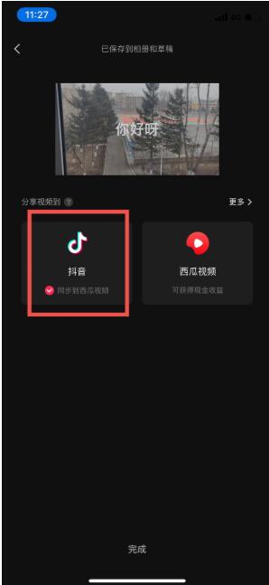 最后点击屏幕右上角的导出,待视频完全导出后,点击分享视频到抖音即可